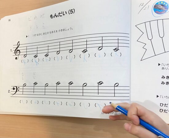ピアノを弾くだけでなく、音符を書く練習も挑戦!!がんばれー!🎼