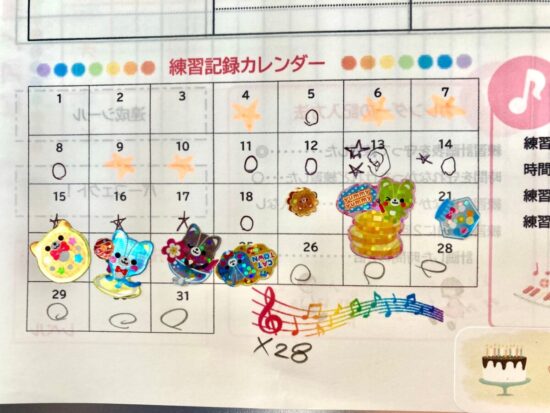 ②練習できた日にはご褒美シールを貼って、褒めてあげましょう!