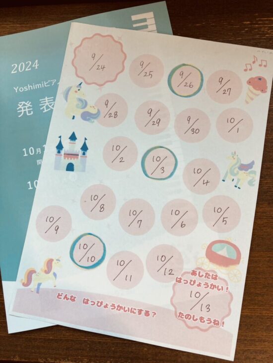 私も日付けを書き込んだり、あ〜レッスン日には丸をしちゃおうかな!なんて準備を進めていると、あら、レッスンあと3回しかないじゃないの…ちょっと焦りの汗が😅笑