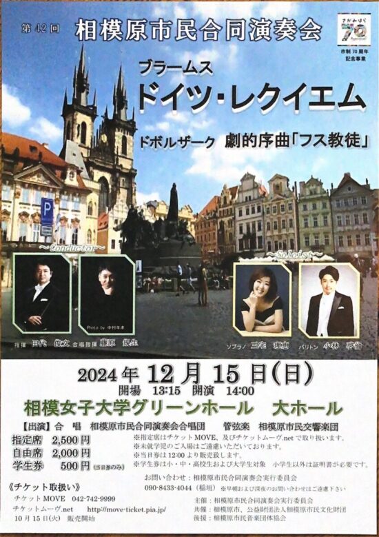 さてさて、来月12/15(日)に相模女子大学グリーンホールにて開催される「相模原市民合同演奏会」に出演いたします🎶