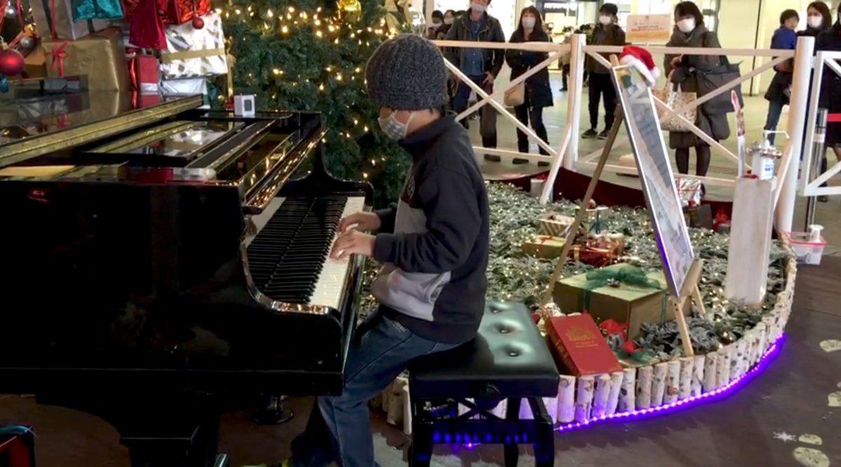 そこで、発表会前の度胸試しに、12月15日から期間限定で設置されている「相模大野」のステーションピアノでも弾いてきたら?と生徒さんに声をかけたところ、小学生男子T君が挑戦してきてくれました!